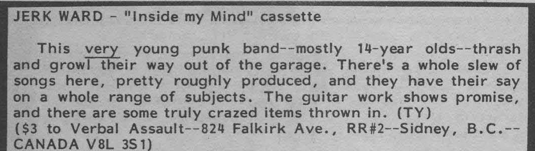 MRR Review - Jerk Ward "Inside My Head" cassette