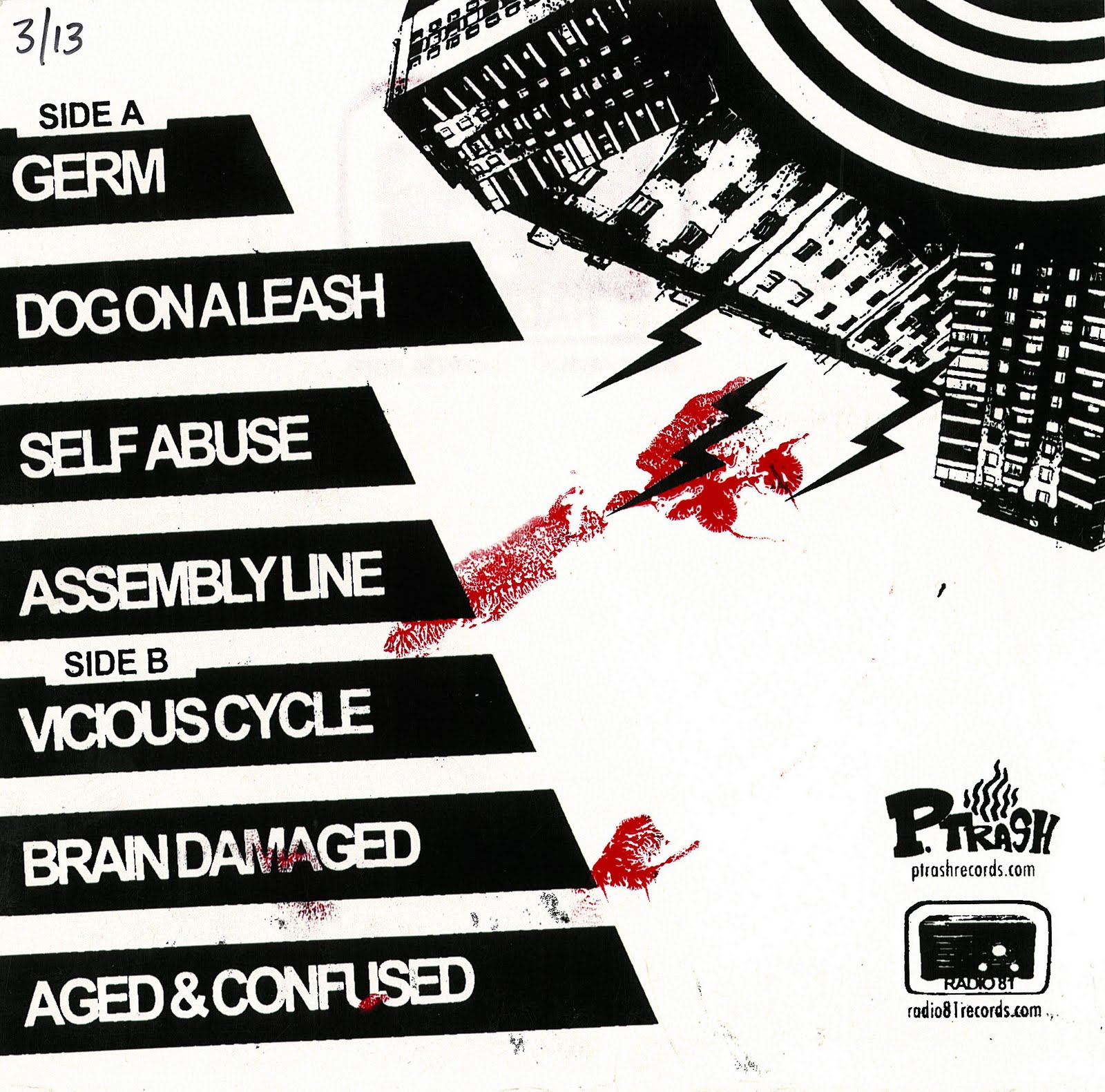 Vicious Cycle's second single had seven songs on it. I think the band initially released this single and a 2nd presing was put out by Radio 81 and P Trash. The band fused the ZERO BOYS and early DESCENDENTS with CAREER SUICIDE and TERMINAL STATE. Ysaél Pépin of DEMONS CLAWS did the silkscreened artwork and involved two more limited pressings.