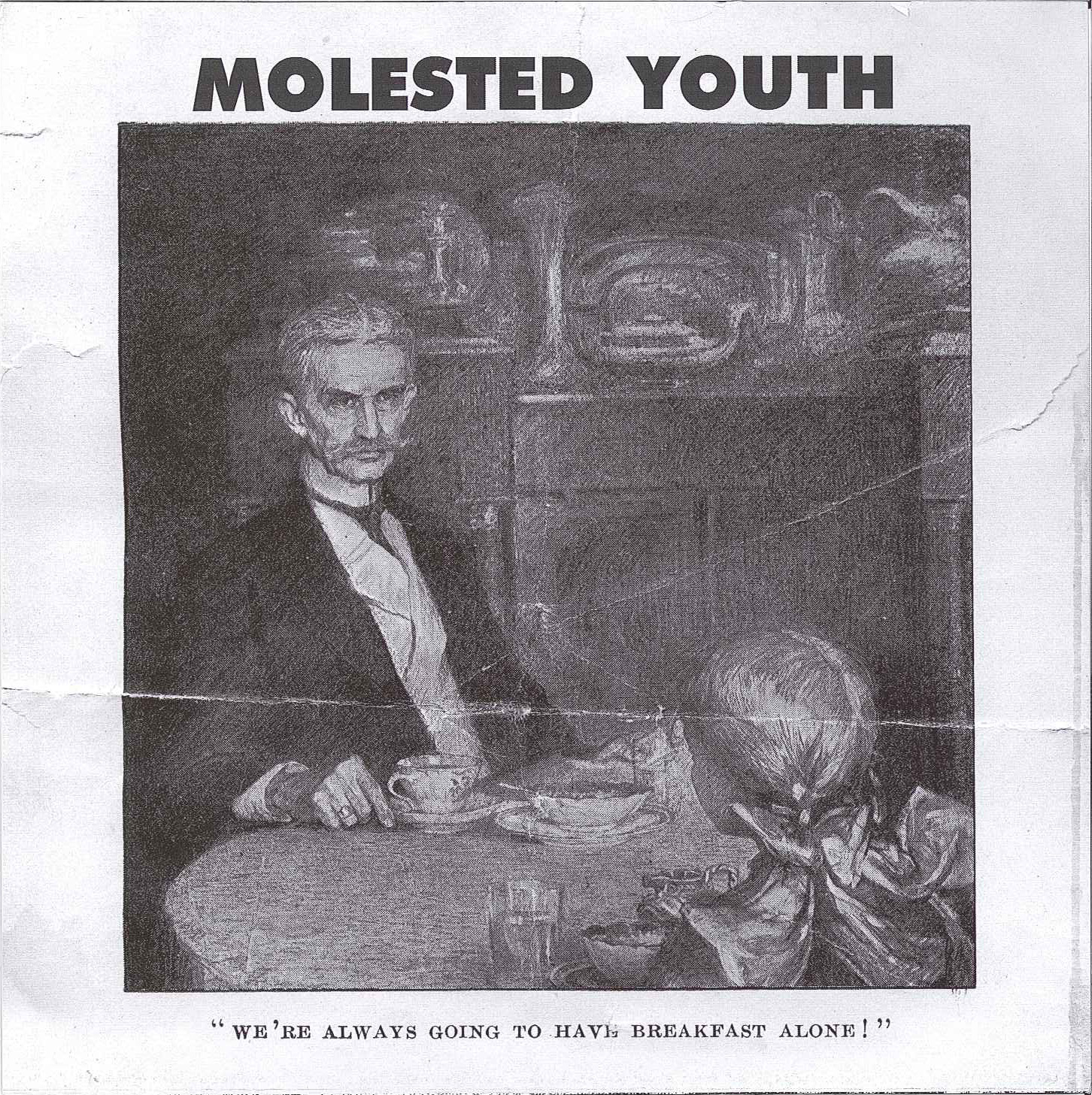 MOLESTED YOUTH are part of Toronto ’s newest wave of hardcore bands. They have been around for a couple of years in a different line up. Warren ’s brother has replaced Sean on vocals giving them more of an early L.A. punk sound. Or at least it reminds me of how hardcore band’s today are looking back trying to recapture that essential anger that spawned bands like BLACK FLAG. And I mean pre-Rollins Flag. Like the way TERMINAL STATE were able to channel the Dangerhouse sound. Well Side B of this ep has the band developing more of their own sound. Songs like “Reparations” really demonstrate a coming into their own. A blending of hardcore speed with punk sounding accents has them straddling both worlds. They demonstrate a knowledge of the generations that make up punk without the baggage of having lived it. The sound really borrows and develops a sonic soundscape that is virgin territory while still sounding vaguely familiar. This is what you want to hear in a new record. A band developing the punk sound. I’m sure the band is happy to hear comparisons to SEX/VID and DEEP WOUND, but really it is somewhere more like trying to be like CAREER SUICIDE exploring early FLAG, STOOGES, ABURADAKO and GANG OF FOUR territory. (Deranged Records - 2700 Lower Road / Roberts Creek, BC / V0N 2W4 / Canada / www.derangedrecords.com)
