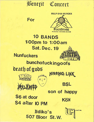 This is a photozine compiled by Rita Laberto. When Photo Drome came out it reminded me of “Welcome to Cruise Country” which was a photo zine that MRR did at the time. The theme of “Cruise Country” was to capture photos of the European bands. There was lots of attention on the North American bands, but MRR wanted to demonstrate the greatness of activity in other countries. Most photozines were limited to their local scene. That was what was easiest for photographers. Shoot pictures of local bands and the bands that came through town. This was the second issue for Photo Drome and I think Rita had made contacts from the first issue with photographers from around the world. Issue 2 got to incorporate photos from some scenes in Europe. So although there were pictures of bands from Toronto which included D.O.G., M.S.I., BSL, the Nunfuckers, and Missing Link there were photos of bands that had played in Toronto like Life Sentence from Chicago, Hyper as Hell from Ohio, Pillsbury Hardcore from Pomona, SNFU from Edmonton. There were also international bands in this zine. Larm from Holland, Indigesti from Italy, the Skeezicks from Germany, Heresy from England. The list goes on and it is an impressive one. It was impressive to us back then because these were bands we had only read about. Photo Drome was a window to the international hardcore scene. Photo Drome made us feel like we had something special in our scene. The zine was professionally printed with colour on the cover which was rare back then for underground zines. And Photo Drome was bound so pages didn’t come apart from the staples not holding. It was just an all round awesome hardcore scrapbook. Click on the cover above to witness the late 80’s hardcore scene in Toronto, the bands that passed through and the bands that inspired us. Here is a list of the bands photographed: