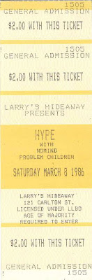 This zine was done by John Barbisan, who would just starting to play guitar for Hype at the time. he had a few co-cospirators like John and Julius who would go on to start Sketchy Records and rob ben who would be known for his Scallen-esque like photos of the Toronto scene at the time. The zine had a skate sub text and this first issue had a cover drawn by Brian Walsby as well as a scene report on L.A. written by Mr. Walsby. This must have been shortly after he had moved to Raleigh. This first issue features an interview with Mike Marley and the Sailors who would go on to become Rocktopus. There was also an interview with DRI where Spike was looking an awful lot like David Lee Roth of Van Halen. Don, a.k.a. Reuben Kincade has a column in which he writes a bit about Pete Warner's suicide. There is an interview with DOA at a show they did on November 30, 1985 at Ildiko's. There is a good scene report that situates the zine at a time when the DMZ closed down but Ildiko's had just started doing shows. There is an interview with the Asexuals at one of their Toronto shows. Neil and John from Neon Rome are interviewed. There is a photo page and a column by Rad Man on skateboarding and a rant about how snowboards suck.