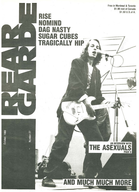 This issue of Rear Garde features Rise and the Asexuals form Montreal, Nomind from Toronto, Tragically Hip from Kingston and Sugar Cubes and Dag Nasty, among other news and reviews.