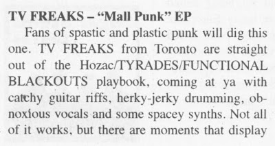This is a review of a re-issue of the Spys ep who were from Windsor. Ugly Pop re-released the ep and MRR wrote the review for this in the July issue (#350) of MRR.