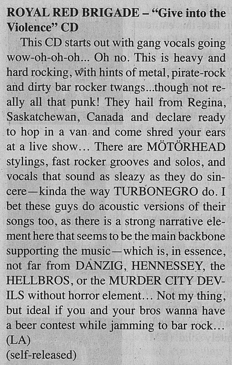 This is a review of the Violent Future demo which appeared in the August 2012 issue (#351) of MRR.