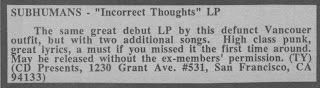 MRR Review - Subhumans "Incorrect Thoughts" LP