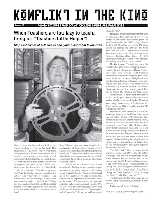 Issue 13 starts off with Skip Elsheimer telling us about his film AV Geeks. Loads of reviews fill the rest of this issue.